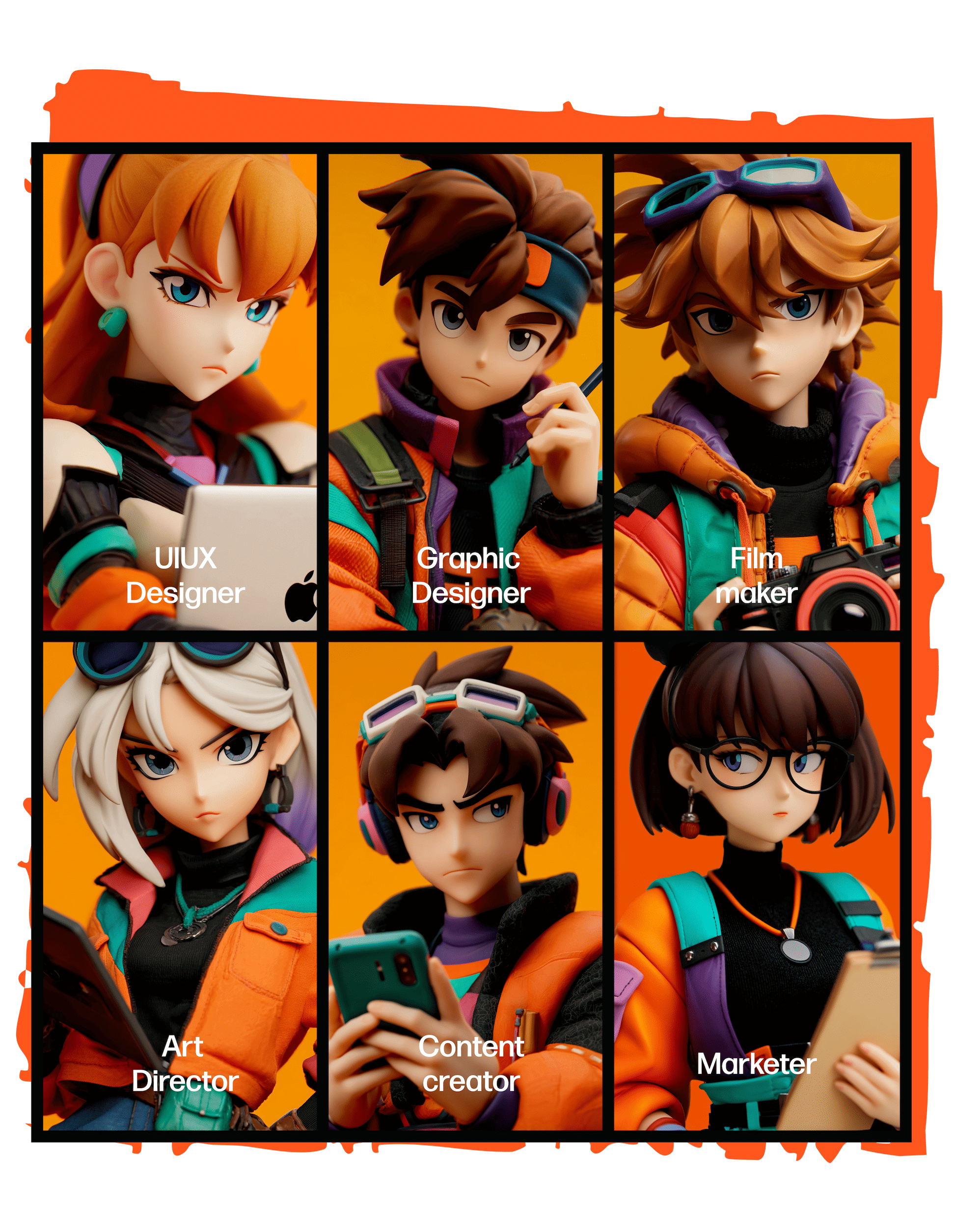 Unlock and transform images or even your own photos into stunning art, whether it's watercolor, cyberpunk, or anything in between. Create your unique visual language in seconds. (Examples show multiple outputs together.)